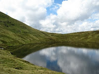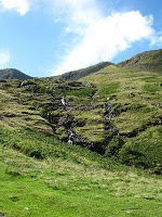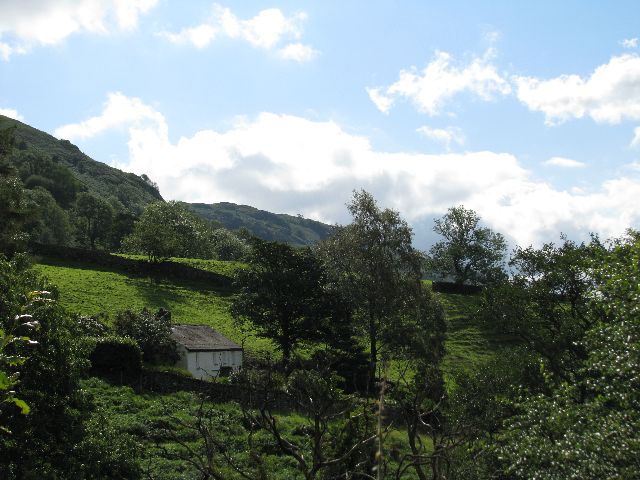This morning we woke up to a clear blue sky and sunshine. During breakfast, we got to know a couple from Cambridge who had also spontaneously decided to stay in the B&B instead of going camping yesterday. So after breakfast, we packed our rucksacks and marched on. Lacing up wet boots is really, really yuck! In Grasmere, we did some grocery shopping and also finally got the right gas cartridge for our camping stove. The paths today were enjoyably distinct and nice, except for the part where it started off with a long steep climb. I think all the height gain was crammed into the first quarter of today’s walk. We couldn’t follow the normal route because the bridge we would have had to cross was blocked. On closer inspection we could see why: all those holes in the wooden boards weren’t really inspiring confidence. Once on top – where we did not have to crawl to – we were rewarded with a beautiful, extensive view and rested on Grisedale tarn’s shore 🙂 From this point on we only went downhill, accompanied by sunshine and sheep galore. We camped on a farm a bit outside of Patterdale, where we enjoyed the luxury of a fully equipped kitchen.