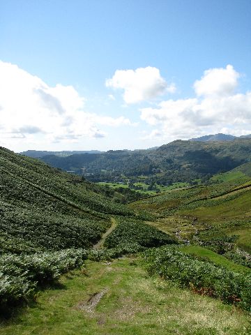 Abendessen ein und auch unsere Gaskartusche für den Campingkocher haben wir endlich bekommen. Der Weg an sich war heute angenehm eindeutig wenn auch mit einer heftigen langen Steigung ziemlich am Anfang. Ich glaube die heutigen Höhenmeter hatten wir komplett auf einmal im ersten viertel der Strecke. Die eigentliche Route und untere Strecke konnten wir leider nicht nehmen da die Brücke die dahin führte abgesperrt war. Bei näherer Betrachtung sah man auch warum, die Löcher im Boden sahen nicht sehr vertrauenerweckend aus. Oben angekommen, nicht auf allen vieren wohlgemerkt, wurden wir mit einer Super schönen Aussicht und einer kurzen Rast am Ufer eines Sees belohnt :-). Ab jetzt ging es nur noch bei Sonnenschein, vorbei an jede menge Schafe, nach unten Richtung Tal. Etwas außerhalb von Patterdale sind wir dann auf einer Farm zum Campen untergekommen mit dem Bonus einer voll ausgestatteten Küche die wir mitbenutzen konnten.