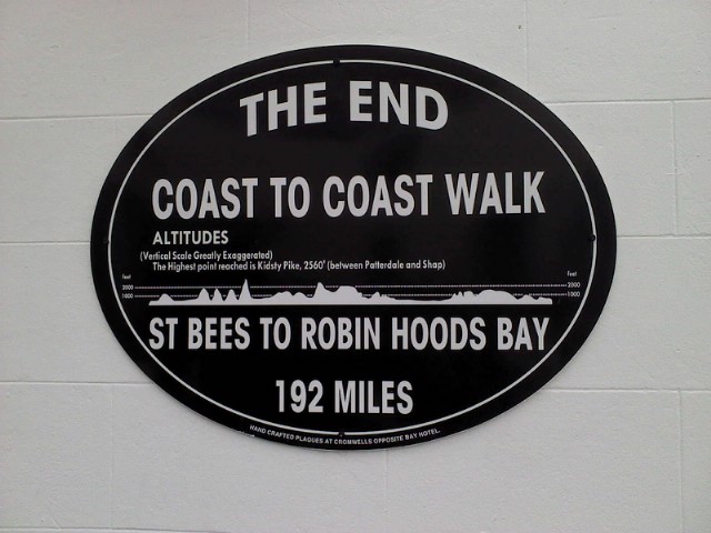 Nach dem steilen Stück kamen wir in das vorletzte Stück Moor, (relativ trocken) um dann, nach einer kurzen Rast in Littlebeck eine Weile im Wald (recht nass) unterwegs zu sein. Nach dem Wald gab es zur Abwechslung noch mal Moor und nasse Füße! Den Part werde ich definitiv nicht vermissen! Nach einer unabsichtlich leicht abgeänderten Route durchs Moor kamen wir durch Hawsker durch, um zum Finale direkt an der Küste lang in Robin Hoods Bay, gegen 18 Uhr anzukommen. Erschöpft aber Glücklich dippten wir am Strand unsere Füße in die Nordsee und verabschiedeten uns von unseren Pebbles. In der Wainwright Bar tranken wir ein Bier auf unsere Leistung!