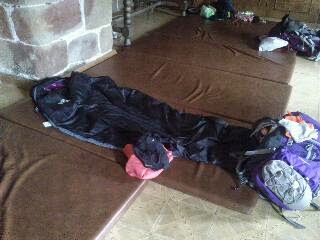 Wieder mal war es ein sehr wuseliger Start am Morgen da alle Pilger versuchten möglichst früh die anstehenden Steigungen des Tages zu bewältigen. Ein Versuch nach draußen auszuweichen zum Frühstücken erwies als schw***kalt und nicht wirklich als gute Idee. Dafür habe ich glaube ich zum ersten mal so wirklich den Sternenhimmel gesehen. Nach einer Runde Kaffee bestehend aus Kaffeepulver mit heißem Wasser aus der Mikrowelle und Joghurt für jeden ging es los in die kalte Morgenluft. Nach dem ersten Anstieg war allen trotz der immer noch kalten Temperaturen warm und so war ein kurzer stop um der aufgehenden Sonne zuzuschauen ok. Der Rest der ersten Tagesetappe war nach kurzer Zeit tatsächlich so langweilig und einfach zu laufen das ich meinen Mp3 Player auspackte um mich abzulenken. Gute acht oder neun Kilometer ging es auf einem extrem breiten Weg nur noch geradeaus durch Wald und sonst war nichts zu sehen. Auch wenn es unterschiedliche Bäume waren und es mal etwas auf und ab ging wurde es schnell öde. An einem bunten Wegweiser traf ich auf einen Teil der Familie und sie waren heiß auf einen richtigen Kaffee und der Wegweiser sagte nur noch zwei Kilometer bis zum nächsten Ort. Ich wollte mich noch ein paar Minuten ausruhen und suchte mir ein schattiges Plätzchen während sie loszogen. In dem Moment kam ein weißer Kastenwagen angeschossen und parkte quasi vor meiner Nase. Aus dem Kofferraum sprang mir ein Hund entgegen und ein Frau plapperte sofort fröhlich auf mich ein ob ich einen Kaffee wollte. Etwas verdattert sagte ich ja warum nicht und sie wuselte los und packte zwei Tische aus und fing an sie zu bestücken mit jedemenge Obst, Plastikbecher und Kaffekannen. Sie drückte mir einen Kaffee mit Milch in die eine und einen Keks in die andere Hand und als ich fragte was sie an Geld wollte sagte sie nur Donativo und stellte eine Box hin. Cool dachte ich mir, mit etwas Geduld und Glück kommt hier sogar der Kaffe zu einem auch mitten im Nirgendwo und er war echt gut! 🙂  Ich wartete noch auf den Rest der Familie und ob sie auch was wollten. Kurz drauf kamen sie um die Ecke und wir nahmen zusammen die letzten zwei Kilometer in Angriff. In der nächsten Bar kamen wir wieder alle zusammen und wir erzählten von dem Donativo Stand oben im Wald. Der restliche Weg bis Atapuerca verging recht schnell und war meistens Flach und überschaubar. Da wir zu früh waren um in einer der beiden Herbergen einzuchecken folgten wir erst mal dem Wegweiser zur nächsten Bar und gönnten uns ein Bier O:). Nach dem Bier und und dem Entschluss für die Herberge mit der Küche, checkten wir dort ein und machten es uns gemütlich. Abends gab es dann gemeinsames kochen, diesmal war ich an der Reihe mit fleißigen Händen zum schnippeln helfen. Es gab Pasta mit Zucchini und Artischokenherzen, mjam lecker!