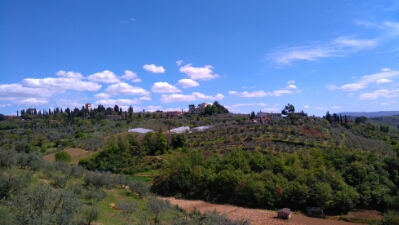Nach einem sehr wortreichem zweiten Frühstück zusammen mit einer alten Bekannten, wollte ich heute einen Wandertag einlegen.  Gedacht hatte ich an eine Etappe des ‚Anello del Rinascimento‘. Das ist ein Rundweg um Florenz herum und ist etwa 170km lang. Durch Zufall bin ich beim stöbern im www drauf gestoßen.  Angedacht hatte ich für heute von Impruneta bis Piazzale Michelangelo zu laufen. Bis Bottai bin ich auch mit dem Bus gekommen nur von dort nicht weiter. Zwei ältere Herren die anscheinend zum Inventar der Bar bei der Bushaltestelle gehören, hatten mir so toll geholfen mit dem Busplan und Ticket kaufen alles für nix! Der Bus bis Impruneta ist irgendwie einfach nicht gekommen. Meine bekannte meinte nur typisch italienisch! Gut das ich das ja kenne und flexibel bin 😉 Da der Weg praktischerweise auch genau an der Bushaltestelle langkommt und ich keine Lust hatte über eine Stunde zu warten bin ich halt von dort gestartet. Anfangs ging es ein gutes Stück an einer Landstraße entlang bis zum nächsten Ort.  Nachdem ich den Ort dann endlich hinter mir hatte war der Weg einfach nur noch wunderschön! Ich muss definitiv noch mal länger herkommen und den ganzen Anello laufen, wer kommt mit?!