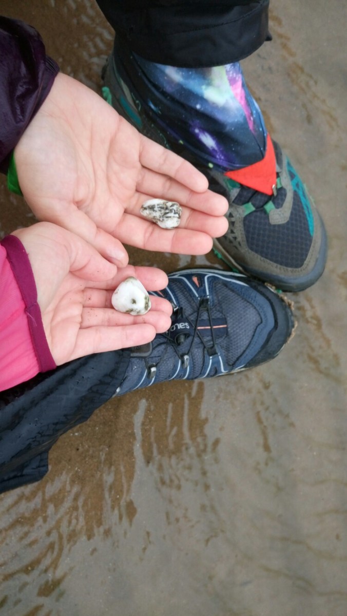 Beim aufstehen hörten wir es schon fröhlich vor sich hin plätschern und es wurde auch absolut nicht besser während dem Frühstück. Gut ausgerüstet mit Regenklamotten wagten wir dann den Start in den Tag. Am Strand suchten wir uns unsere Pepples aus und dippten die Füße in die Irish Sea. Jetzt waren wir endgültig Startklar. Der erste Anstieg des Tages führte uns auf den St Bees Head