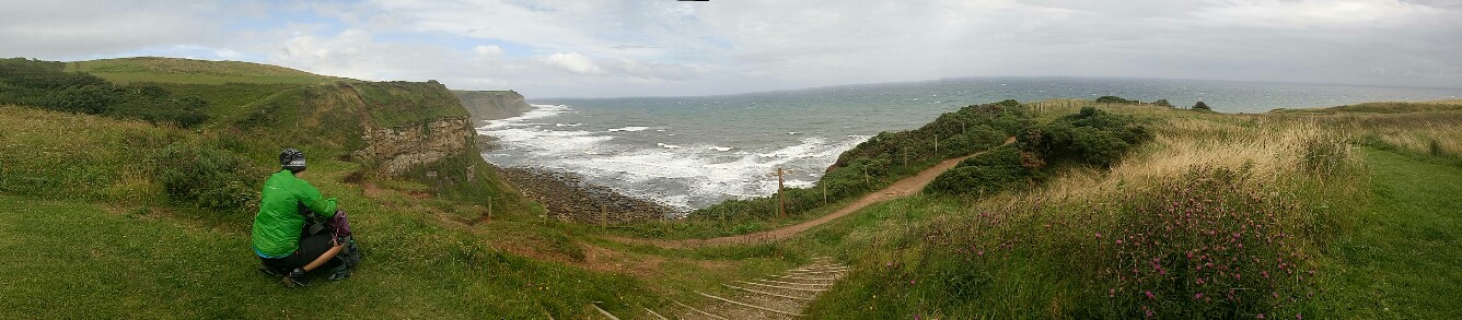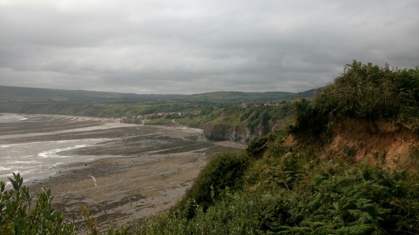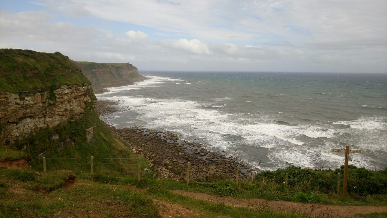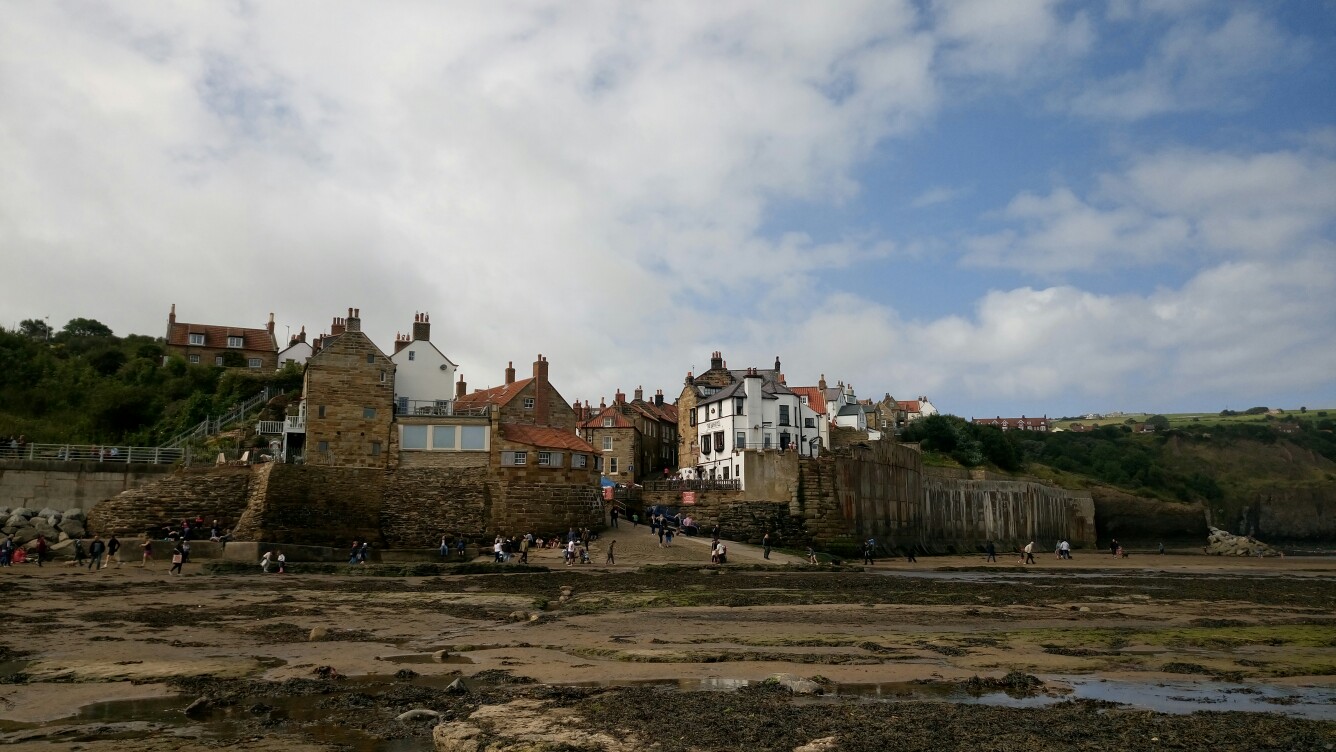 In der Nacht hörte es sich noch nicht danach an als ob der Regen noch mal aufhören würde aber tatsächlich pünktlich zum aufstehen war es von oben trocken. Um wirklich den Coast to Coast korrekt zu beenden sind Franzi, Snir und ich zurück nach Hawsker wo wir den Tag vorher gestoppt hatten. Ein kurzes Stück noch und wir waren endlich an der Küste und die Sonne kam raus! Jetzt folgten wir nur noch dem Fußweg nach Robin Hoods Bay und ließen uns richtig Zeit um die letzten paar Kilometer zu genießen. In Robin Hoods Bay angekommen sind wir als erstes in die Wainwright Bar im Bay Hotel. Das Essen dort ist absolut zu empfehlen. Ich weiß gar nicht was so viele mit dem englischen Essen haben. Ich hatte bisher nichts in den diversen Pubs gehabt was nicht geschmeckt hat.