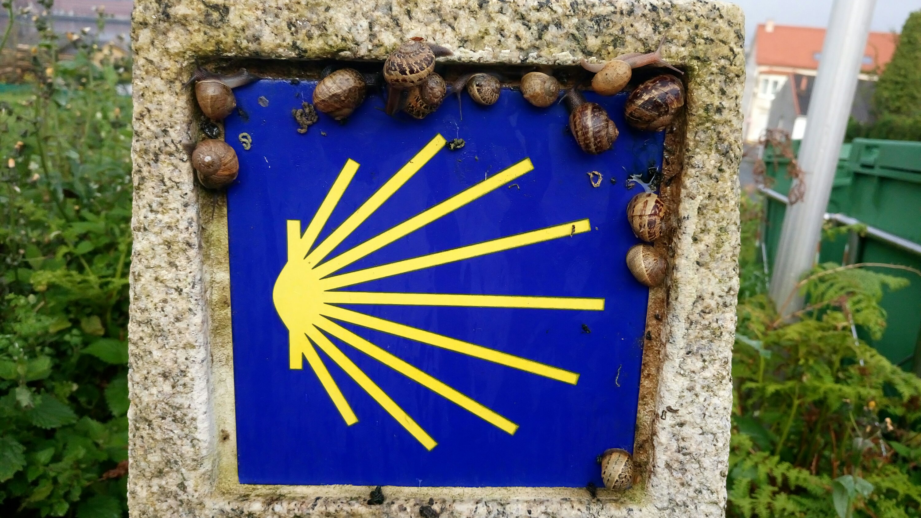 Die Wegweiser sind meistens schon auf einige Entfernung zu erkennen und so ist es nicht schwer den Weg zu finden. Lustig ist es wenn ich doch in eine Straße oder Weg einbiege um ein Foto zu machen. Garantiert ist dann jemand hinter mir der wild gestikulierend versucht mich daran zu hindern „falsch “ zu laufen. Das ich den Wegweiser gesehen habe geht dabei unter und ich werde schon fast an die Hand genommen um an der richtigen Stelle abzubiegen… Ich bin brav mitgegangen und habe Si si gesagt und artig einen schönen Tag gewünscht.