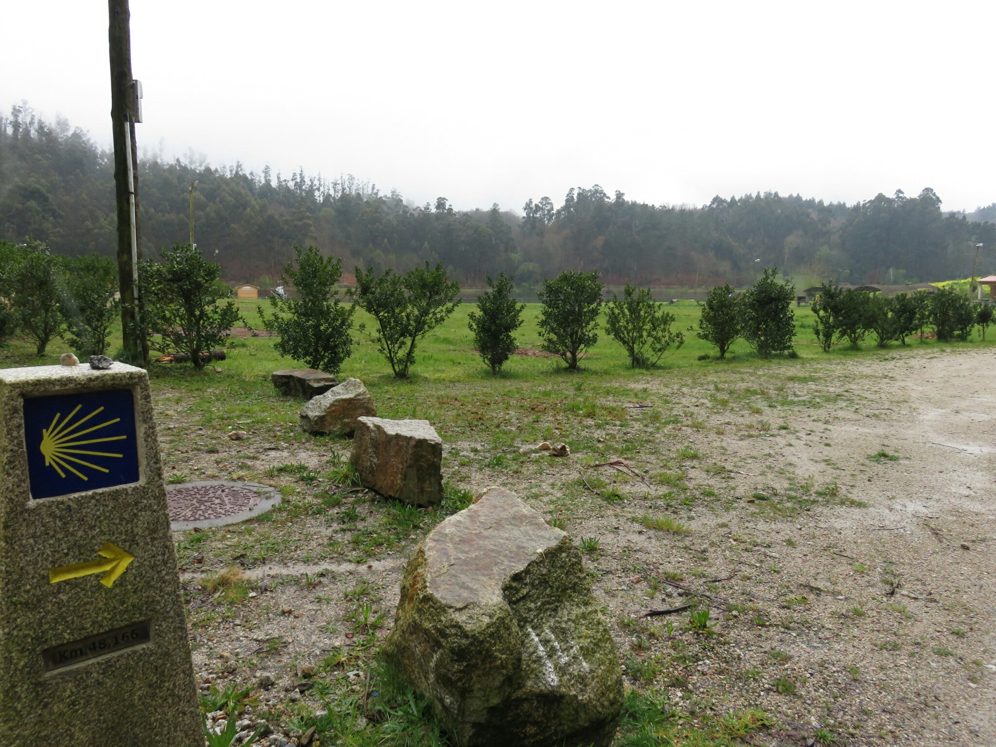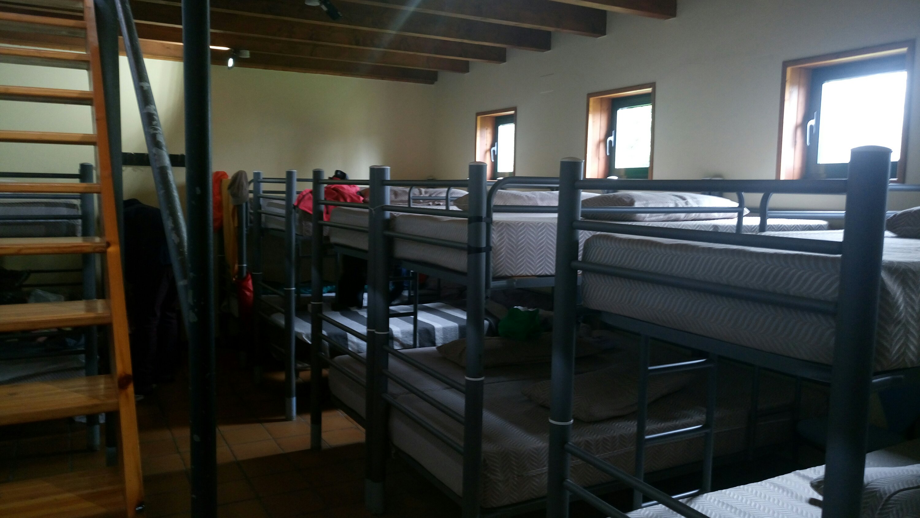Kurz vor dem Punkt wo die beiden Caminos von A Coruna und Ferrol zusammen treffen war der höchste Punkt des Tages erreicht. Ab da ging es nur noch abwärts. Im Gegensatz zum Wetter das bewegte sich aufwärts in dem es aufhörte zu regnen, yeah! Etwa drei Kilometer vor Hospital da Bruma kam noch eine Bar. Da wir früh dran waren legten wir eine kurze Tee und Kaffeepause ein um frisch gestärkt das letzte Stück des Tages anzugehen. Gegen drei Uhr erreichten wir die Herberge, checkten ein und „eroberten“ uns je ein Bett. Ich glaube nicht das die Herberge heute überrannt wird aber abwarten, bislang sind es insgesamt fünf Pilger. Für ein spätes Mittagessen sind wir in die Bar einmal über die Straße. Die Essensbestellung war sehr lustig. Die Besitzerin der Bar spricht natürlich spanisch aber auch deutsch. Da saß ich nun und wechselte in einem Satz zwischen meine fünf Wörter Spanisch , Deutsch und Englisch hin und her.