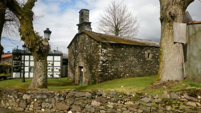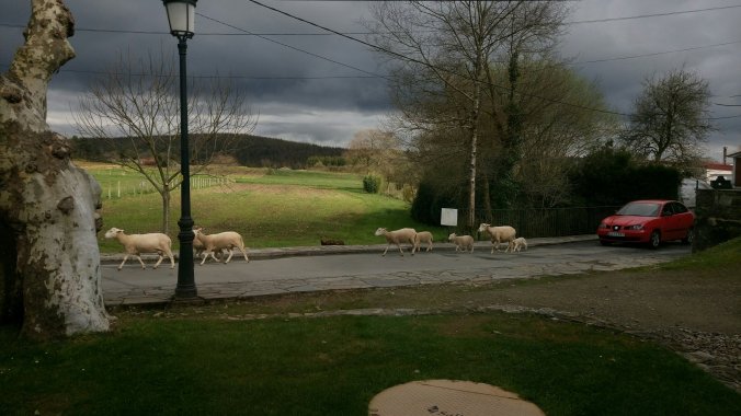 Nach einem sehr üppigem Abendessen, inklusive Wein, zusammen mit den beiden englischen Pilgerinnen bin ich heute etwas später als die Tage zuvor gestartet. Es hat zwar die meiste Zeit wieder leicht geregnet aber in Gesellschaft der beiden Engländerinnen ist es schon wieder sehr lustig. Ein weiterer Pluspunkt war das der Weg abwechslungsreicher war als Gestern. Ich weiß zwar noch nicht so ganz was ich von der geänderten Wegführung des Camino Inglese halten soll aber heute war die Etappe dadurch ein paar Kilometer kürzer. Den ersten Kaffeestop legten wir früh ein für den wir einen kleinen Umweg machen mussten. Das war aber völlig in Ordnung. Wie gestern ging es weiter durch kleine Ortschaften und diverse Wälder nur diesmal die meiste Zeit bergauf. Irgendwoher müssen ja die Höhenmeter kommen ;-).