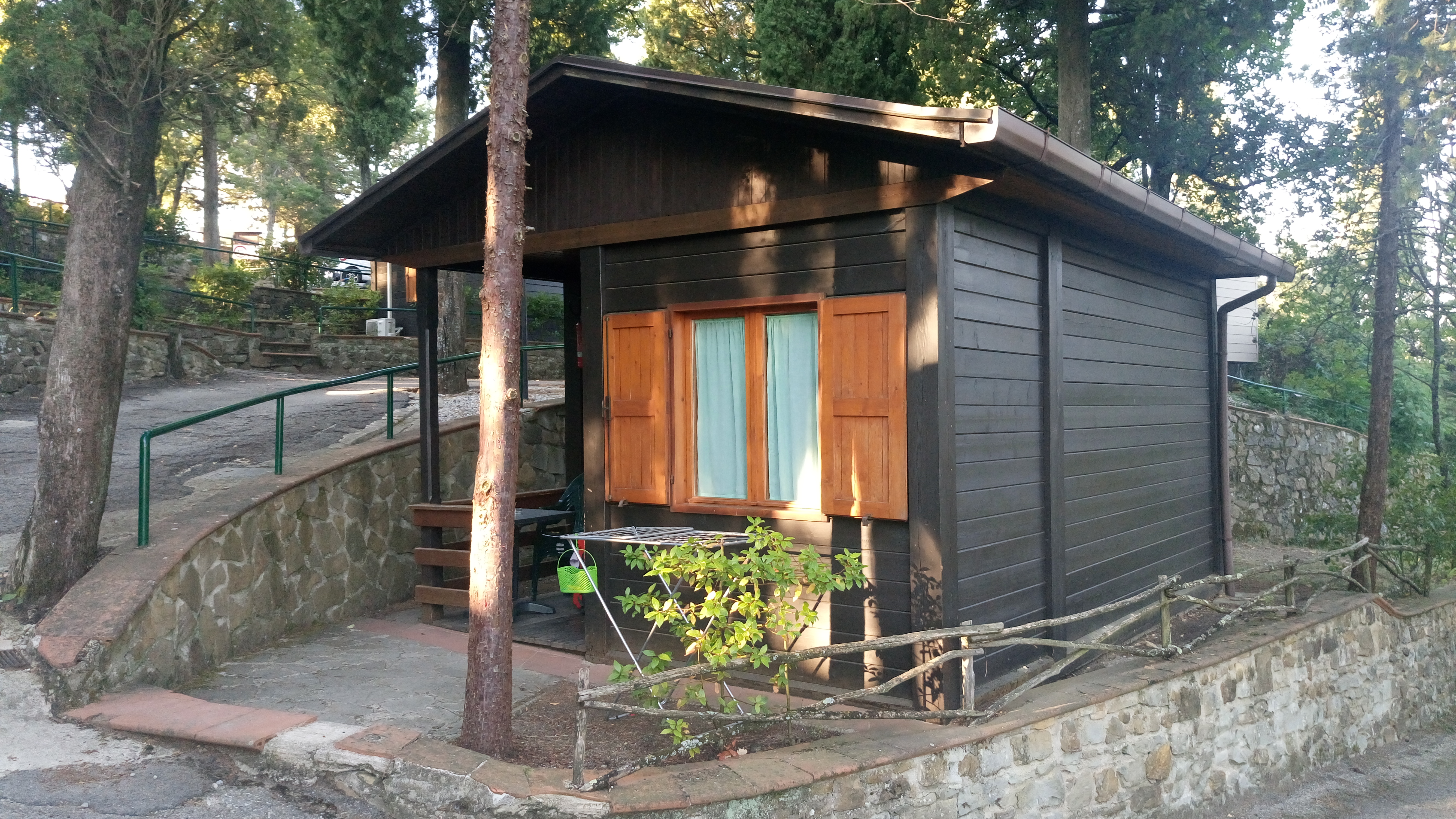 Umso leichter fiel uns die Entscheidung hier am Ortseingang abzubiegen und am Campingplatz Schluss zu machen. Hier war nun unser persönliches Ende der Via Degli Dei erreicht. Wir hatten Glück und konnten die letzte kleine Holzhütte für die Nacht mieten und hatten so den Luxus von richtigen Betten und einem Bad ganz für uns alleine. Der Campingplatz hat eine schöne Terrasse mit Ausblick auf Florenz dort ließen wir dann mit einem leckeren Abendessen und einem Glas Wein unser Abenteuer ausklingen.