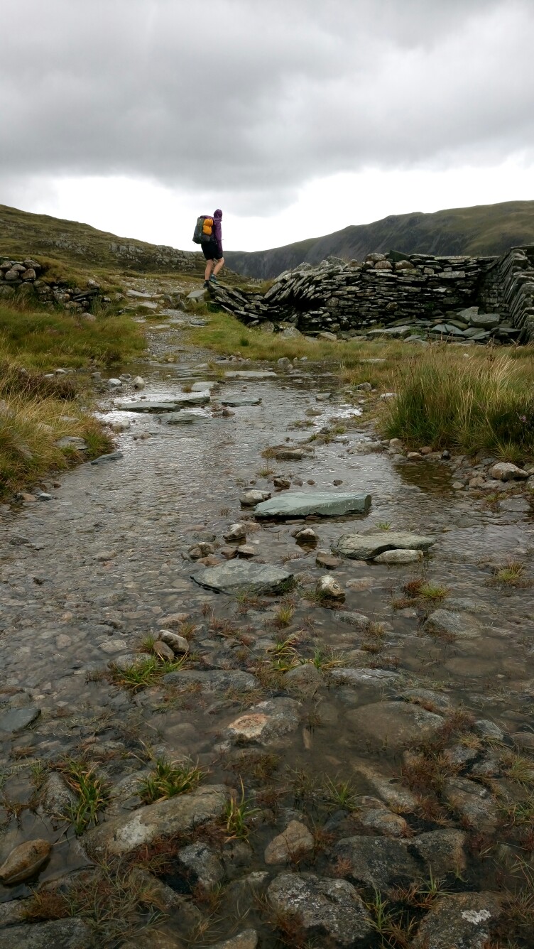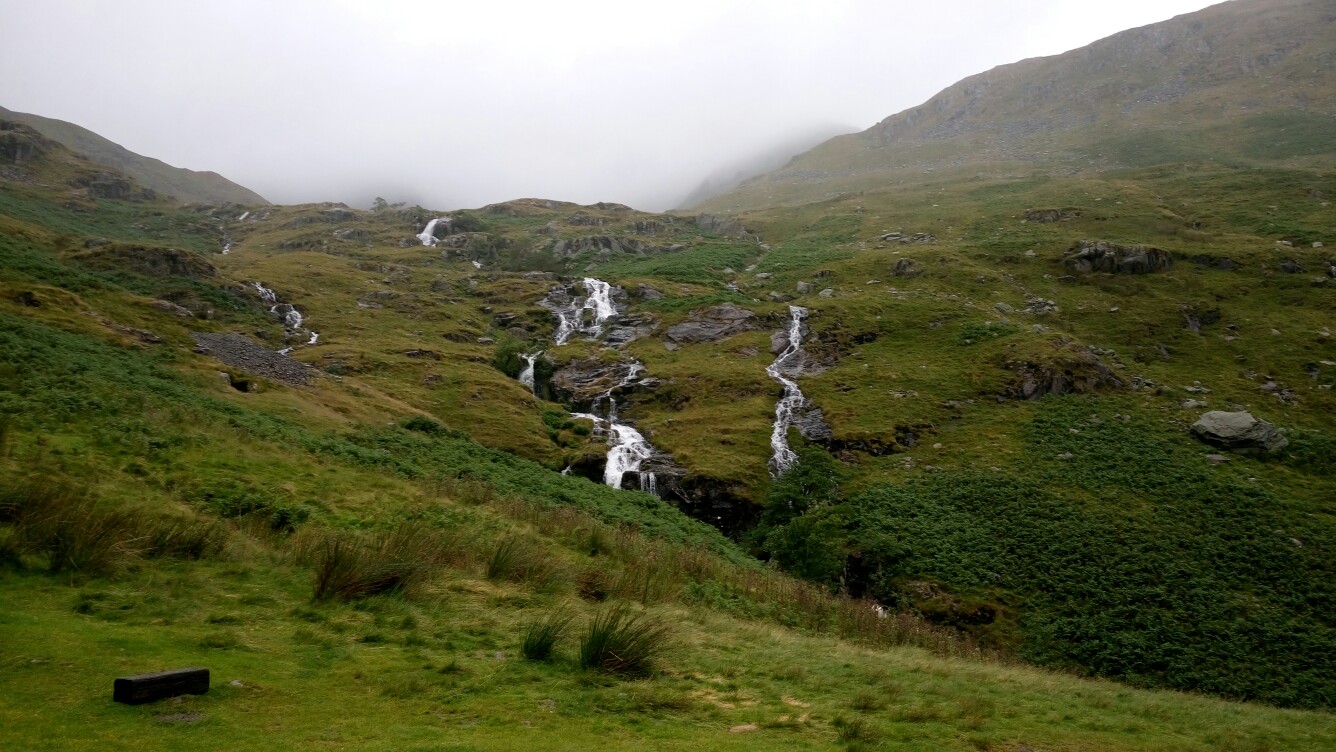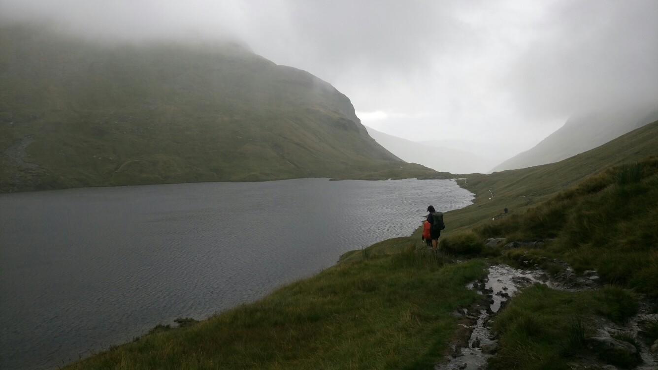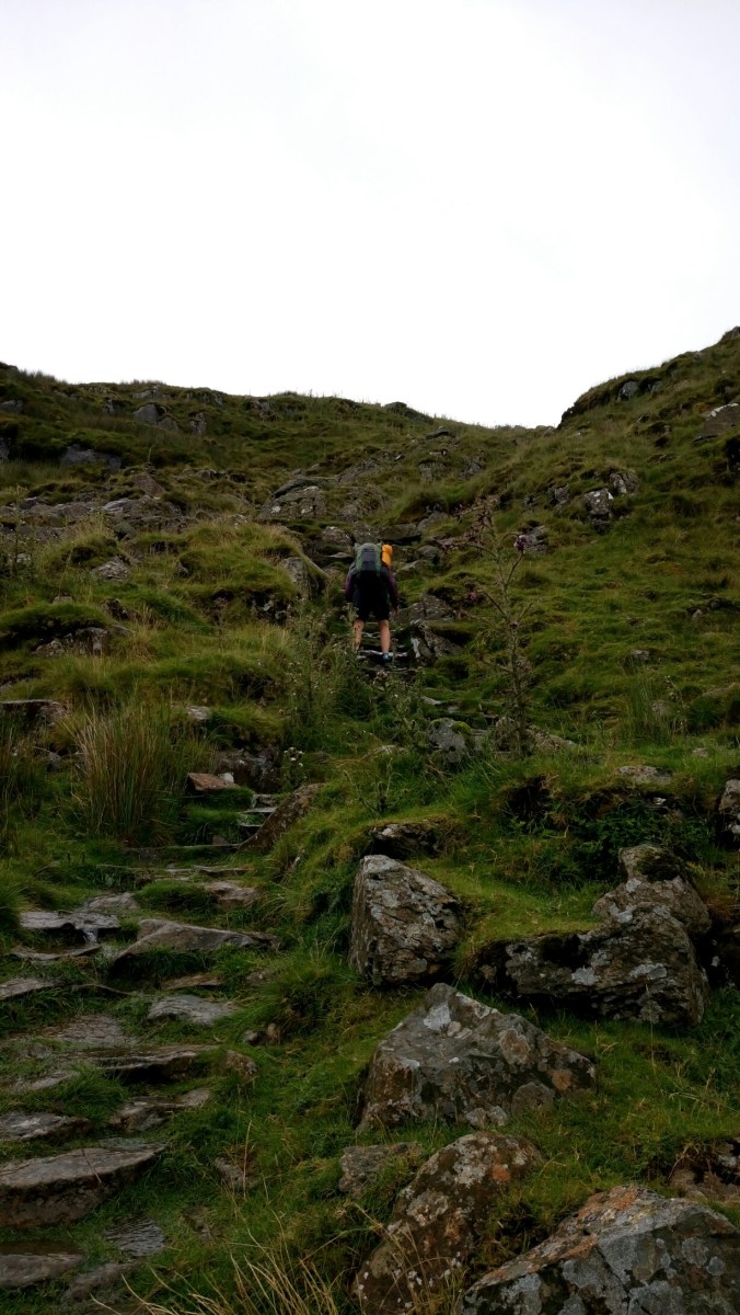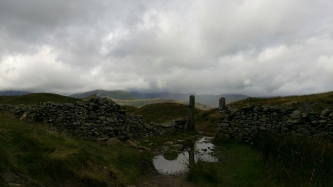 Nach kurzer Beratung und abwägen von dem schnellen Wolkenzug und dem dazugehörigen starken Wind entschieden wir uns für die Höhenroute. Wenn es zu windig wird auf dem ersten Stück können wir immer noch umdrehen. Wie sind nicht umgedreht und konnten mit dem Gipfel High Rise noch die 800 m Marke knacken. Wir folgten recht bequem einer alten Römerstrasse und hatten links und rechts von uns eine tolle Aussicht in die Täler und auf die anderen Berge rundherum. Das letzte Stück nach unten zum Ufer von Haweswater war sehr eng und rutschig ab da ging es recht einfach immer am Ufer entlang bis zur Staumauer. Ab hier haben wir leider den Lake District verlassen. Es war extrem nass diesmal und ja wir hatten beide unsere Frustmomente, wie z.B. jedes mal wenn ein Flecken mal gut zum hinsetzen war für ein Pause, hat es garantiert losgeschüttet. Einmal haben wir uns in einer Telefonzelle untergestellt das sah lustig aus 😀