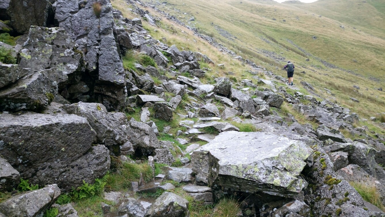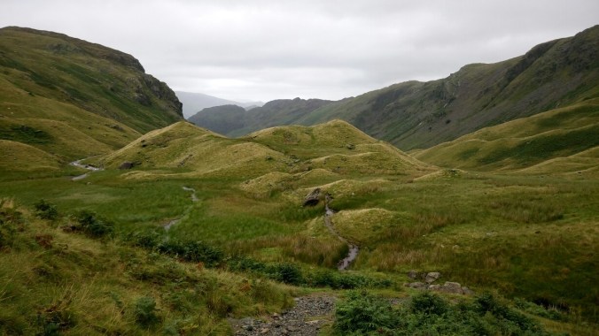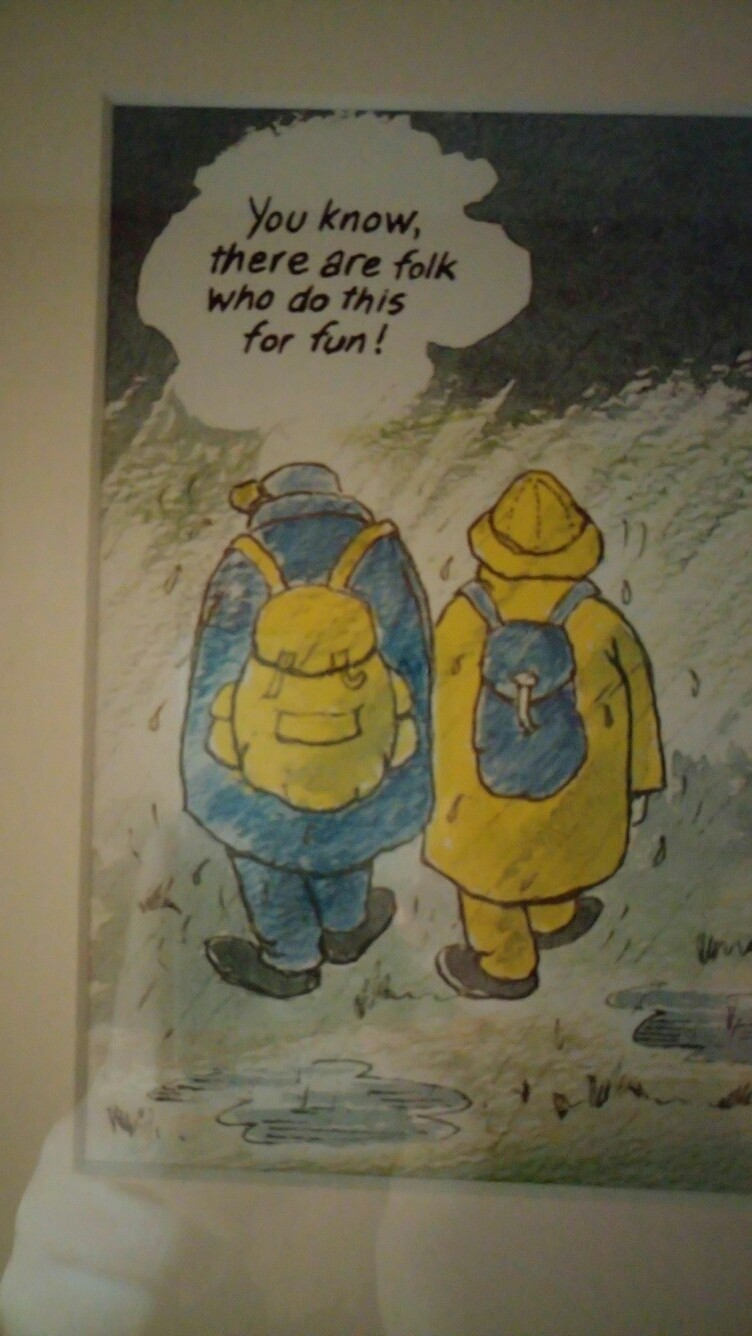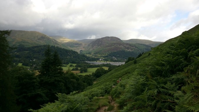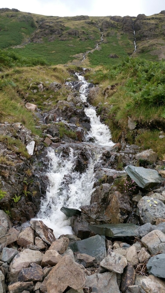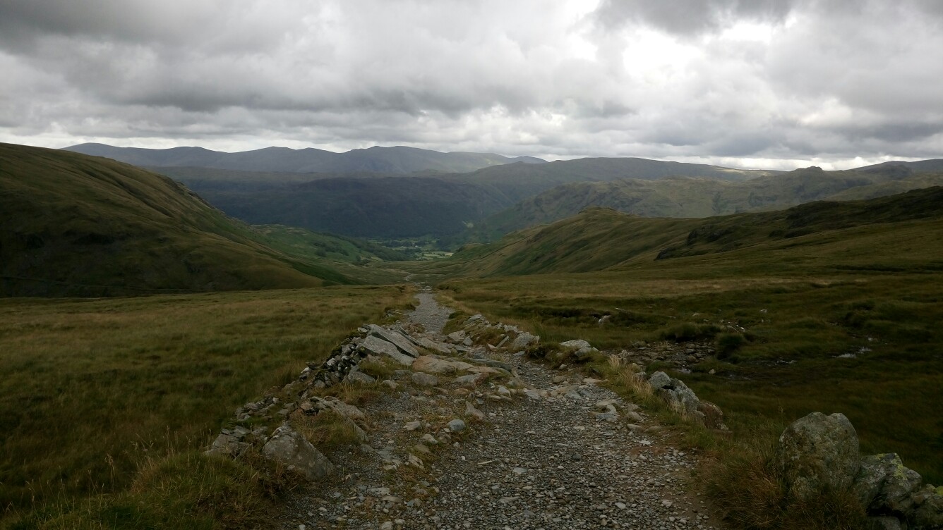 Nach kurzer Beratung und abwägen von dem schnellen Wolkenzug und dem dazugehörigen starken Wind entschieden wir uns für die Höhenroute. Wenn es zu windig wird auf dem ersten Stück können wir immer noch umdrehen. Wie sind nicht umgedreht und konnten mit dem Gipfel High Rise noch die 800 m Marke knacken. Wir folgten recht bequem einer alten Römerstrasse und hatten links und rechts von uns eine tolle Aussicht in die Täler und auf die anderen Berge rundherum. Das letzte Stück nach unten zum Ufer von Haweswater war sehr eng und rutschig ab da ging es recht einfach immer am Ufer entlang bis zur Staumauer. Ab hier haben wir leider den Lake District verlassen. Es war extrem nass diesmal und ja wir hatten beide unsere Frustmomente, wie z.B. jedes mal wenn ein Flecken mal gut zum hinsetzen war für ein Pause, hat es garantiert losgeschüttet. Einmal haben wir uns in einer Telefonzelle untergestellt das sah lustig aus 😀