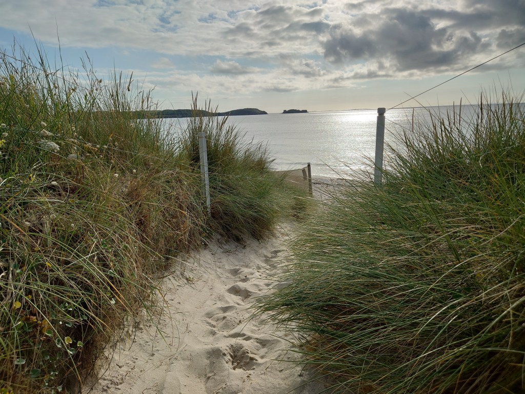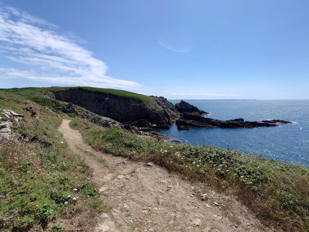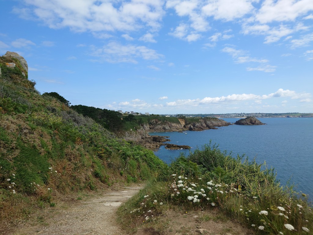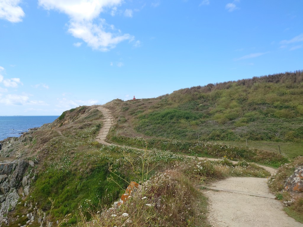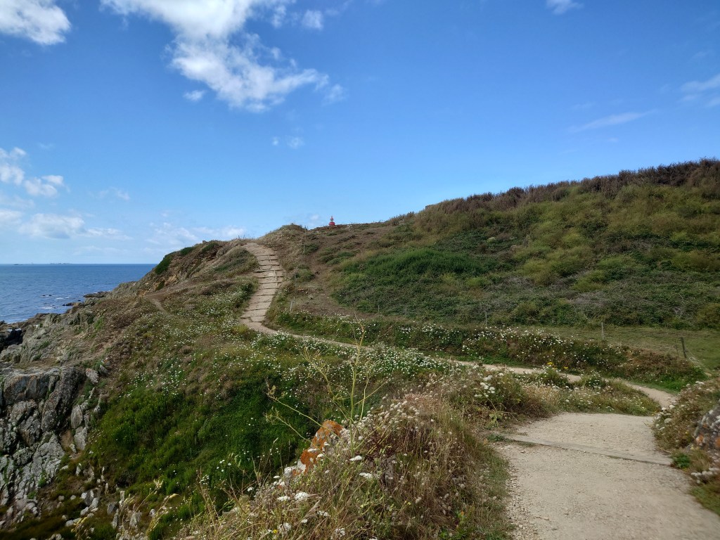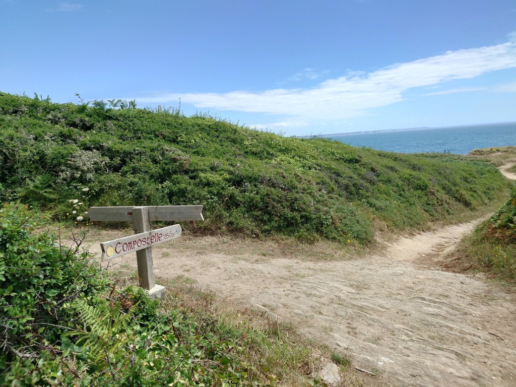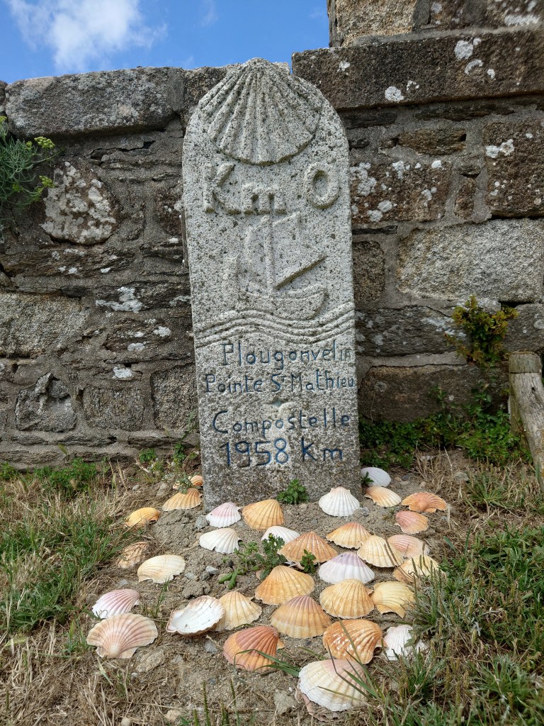 Unser Plan gestern war, für heute früh den Wecker zu stellen um zeitig in den Tag zu starten. Das hat wunderbar funktioniert, keiner von uns hatte daran gedacht den Wecker wirklich zu stellen. Entsprechend spät kamen wir in die Pötte mit unserer geplanten Wanderung entlang der Küste zum Ende der Welt. Oder je nachdem wen man hier fragt auch zum Anfang der Welt. 😊 Alles eine Frage der Perspektive. Für die Franzosen ist es das Ende der Welt und für die Bretonen der Anfang. Dafür spricht auch, dass wir die Muscheln vom Jakobsweg nur in die Gegenrichtung sehen konnten, nicht in Richtung Abtei Saint Mathieu de Fine Terre. Der Weg war wunderschön, mit unglaublichen Aussichten und vielen Höhenmeter. Die Sonne strahlte mit voller Kraft auf uns herab und ein frischer Wind blies uns um die Nasen. Ja, um die Mittagszeit bei höchstem Sonnenstand auf so eine Strecke zu starten war nicht besonders geschickt aber es war halt jetzt so. 🤷 Nach knappen neun Kilometer errichten wir unser Ziel, das nicht zu übersehen war. Die große Abteiruine begleitet von zwei Leuchttürmen und diversen weiteren Gebäuden. Ziemlich schnell entdeckten Steffi und ich den Null Kilometer Stein als Startpunkt nach Santiago de Compostela. Bis dahin sind es nur 1.958km … Das wären grob gerechnet 98 Tage bei einem Tagesschnitt von 20 km … warte ich habe alles dabei was ich brauche, inklusive einem Pilgerausweis… Ich Lauf dann mal los 😁 wir sehen uns irgendwann später wieder. Ich muss nur noch mein Auto irgendwie nach Hause schicken 😅 So verlockend das jetzt wäre, aber es ist dann doch nicht die richtige Zeit dafür. Als Alternative besuchten wir noch die kleine Kapelle direkt neben dem 0 Kilometer Stein – Chapelle de Notre Dame de Grâces und den alten Leuchtturm. Es waren auch nur 136 Stufen in einer engen Wendeltreppe nach oben. Den Drehwurm beim runtergehen hatte ich direkt als Bonus obendrauf 🥴 Da wir nun zeitlich etwas knapp dran waren, nahmen wir für den Rückweg den Radweg direkt an der Straße entlang. Nicht schön aber kurz genug das wir noch bis zum nächsten Campingplatz fahren konnten. Direkt am Strand gelegen, einfach, aber praktisch. Wir machten vor dem Abendessen noch einen schönen Strandspaziergang um dann den Tag ausklingen zu lassen.