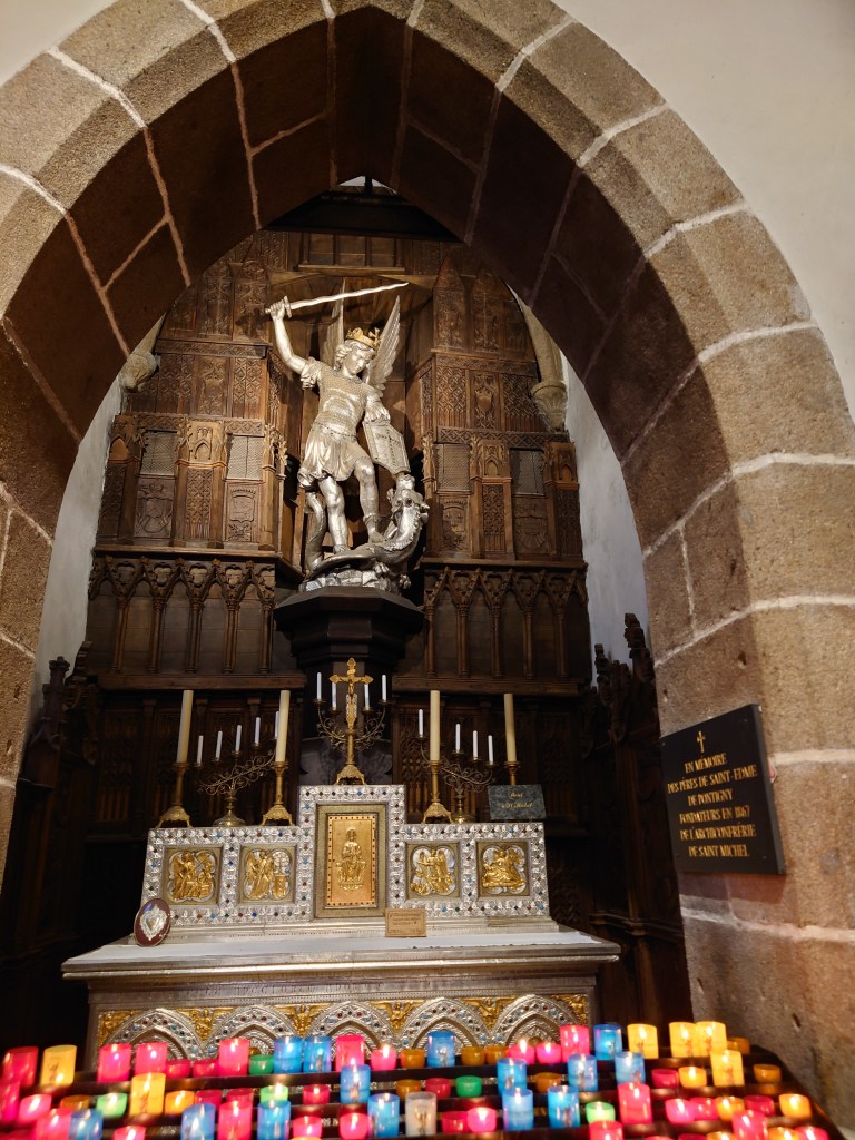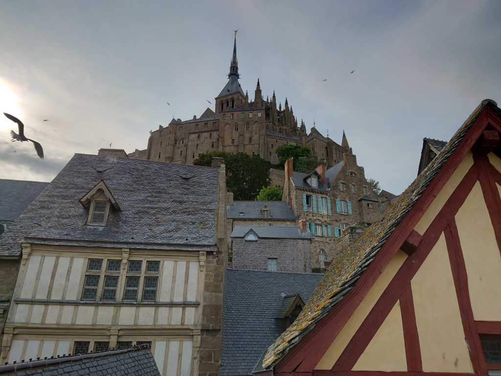 Ich musste sehr lachen als ich zum Urlaubsstart – kurz bevor ich losgefahren bin – noch zwei Tipps bekommen hatte was wir uns in Frankreich anschauen sollten. Ursprünglich sollte der Urlaub ja nach Südengland gehen, unter anderem wollten wir Mount Michael und Stonehenge besuchen. Das englische Gegenstück zu Mont Saint Michel. Ratet was mir empfohlen wurde: genau! Mont Saint Michel. 😅 Treffer versenkt. Bevor wir allerdings, nun gen Osten, weiter fahren gönnen wir uns ein Frühstück direkt an der Strandpromenade 😁 ja das Leben und Urlaub kann ganz furchtbar sein 😉 Statt Stonehenge besuchten wir kurz vor Mont Saint Michel noch einen großen Druiden (Hinkel) Stein mitten im Nirgendwo. Unsere Taktik direkt zum Campingplatz vor Ort zu fahren funktionierte am Festland von Mont Saint Michel nur mäßig. Der liegt in einer verkehrsberuhigten Zone und ohne Reservierung wird man nicht durchgelassen. 🙄 Das hätten sie vielleicht eeetwas deutlicher auf der Webseite schreiben können, da steht nur Reservierung ist empfohlen, nichts von ohne geht nix! Egal mit einer kurzen Online Suche gab es kurzerhand ein Hotelzimmer für die nächsten beiden Nächte. Beim Einkaufen stolperten wir über einen Flyer wo 1000 Jahre Abtei Saint Michel gefeiert wird, mit einer extra Lightshow in der Abtei. Das findet genau ab diesem Wochenende statt, heute und dann ab Montag wieder. Ja super, das passt haargenau für uns. Durch die Lichtershow ist die Abbey sogar bis 23:00 Uhr geöffnet. Wir checkten in Ruhe ins Hotel ein drehten eine kleine Runde in Pontorson und machten uns nach einem frühen Abendessen fertig um Mont Saint Michel zu erkunden. Mit dem Auto ging es bis „annähernd“ zur Fußgängerbrücke. Es kamen uns Menschenmassem ohne Ende entgegen plus einem ordentlichen Regenschauer 💦 Zum Glück hatten wir unsere super Regenponchos aus Chartrês dabei und kamen gut auf der anderen Seite an. Diese riesengroße Abtei auf dem Felsen mitten im Atlantik (wenn das Wasser da ist) ist sehr beeindruckend. Im Touristikbüro fragten wir wie lange der Shuttlebus zum Parkplatz fährt und wie das mit den Eintrittskarten für die Abtei ausschaut. Siehe da, die Tickets sind hier günstiger als an der Kasse in der Abtei. Da die Lichtershow erst ab ca 19:30 Uhr losgehen soll, schauten wir uns in den verwinkelten kleinen Gassen kreuz und quer um. Die Treppenstufen hab ich gar nicht erst versucht zu zählen 🤪 es waren sehr viele. Gegen 20:00 Uhr machten wir uns endgültig an den Aufstieg zum höchsten Punkt. Nach noch viel mehr Stufen und diversen Kapellen und Krypta standen wir endlich in der Abtei, wow. Insgesamt sehr beeindruckend. Wir geisterten noch durch den Kreuzgang und über den Vorplatz der Abtei und machten unzählige Fotos bevor wir uns einen Platz für die Hauptlichtshow sicherten. Bei Einbruch der Dunkelheit ging es endlich los. Die Show war schön und gut gemacht, kam nur nicht so ganz an die Show von Chartrês an. Müde machten wir uns an dem Abstieg und zurück über die Brücke zum Auto. Das stand einsam und verlassen auf diesem riesigen Parkplatz. Trotzdem hatten wir es auf Anhieb gefunden. Der Trick ist ganz einfach, so lange bleiben bis keine anderen Autos mehr stehen 🤪 Morgen wollen wir von Pontorson über den Jakobsweg nach Mont Saint Michel laufen das sollten ca 9km sein, eine überschaubare Strecke. Zurück wollen wir tendenziell mit dem Bus fahren. Jetzt fallen wir aber hundemüde ins Bett. 😴