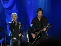 Nach einer laaaaangen Umbaupause ging es um kurz vor neun endlich mit Roxette los!!! Gleich mit den ersten Tönen von Dressed for Success war das Publikum mit von der Partie und machte ordentlich Party. War Marie in Halmstad noch eher zurückhaltend auf der Bühne unterwegs, umso mehr ist sie jetzt am Tanzen und fegt schon fast wieder wie in alten Zeiten über die Bühne. Nach Sleeping in my Car und The Big L. gab es das erste ruhigere Lied mit Wish I could fly … brr … wenn das gesamte Publikum mitsingt ist Gänsehaut schon vorprogrammiert. Ein großer Hit jagte den anderen, nur unterbrochen durch die Balladen, die Wort für Wort mitgesungen wurden! Der erste Teil des Konzerts wurde mit Joyride und einer Flut an bunten Luftballons beendet. Nach lauten Zugabe Rufen kam die Band zurück und es wurde Watercolours in the Rain, Spending my Time und The Look gespielt. Klar wurde das Publikum bei The Look ordentlich angefeuert immer lauter zu singen 😉 und es konnte richtig laut singen!!! Ob die Töne alle gestimmt haben steht auf einem anderen Blatt. :D. Zur zweiten Zugabe gab es dann endlich Way Out, die neue Single, in einer genialen Version zu hören! Mit Listen to your Heart und Church of your Heart ging ein absolut geniales Konzert (leider viel zu schnell) zu Ende. Als kleines Schmankerl wurde vom Veranstalter zum Abschluss noch ein Feuerwerk unter vielen aaahs und oohs gezündet. Müde aber glücklich machten wir uns, mit einem hartnäckigen Ohrwurm, auf den Rückweg. * sing* „Way out, out of the blue …“ 🙂
