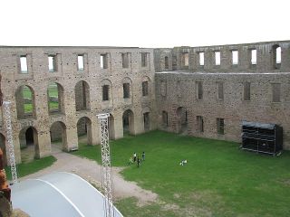 Mit den letzten bissen Kuchen und dem letzten Schluck Kaffee fing es an zu Regnen, klar wir wollten ja auf eine Open Air Konzert * sigh*. Schnell packten wir Tassen, Teller und unsere Klamotten und zogen nach innen. Bei dieser Aktion schaute uns die Kellnerin etwas verwirrt an … gut es kommt wohl nicht so oft vor das die Gäste ihr Geschirr selbst abräumen ;). Nach und nach verzogen wir uns kurz, um unsere Selbstgemachten Tour-Shirts anzuziehen… draußen vor der Tür folgten dann, dank des Wetters, noch schnell Pullover und Jacken. Auf dem Weg zur Zitadelle öffnete der Himmel dann Endgültig seine schleusen und es fing an zu Richtig zu schütten. Der Platz unter dem Baum gab nicht lange genügend Schutz so verkrümelten wir uns unter die nahe Brücke und schauten dem Regen von dort zu.