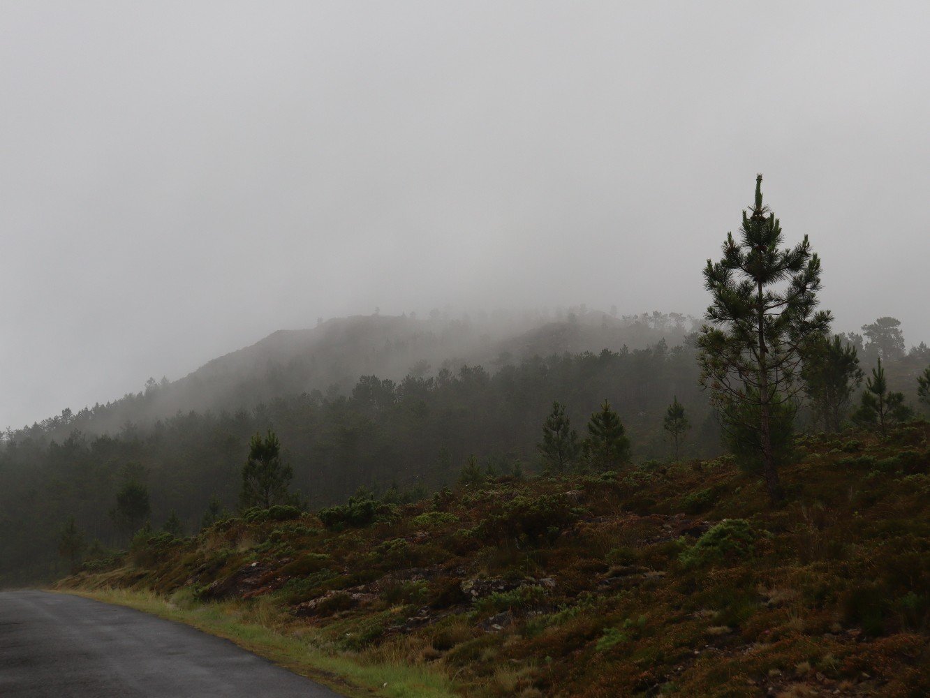 Leider meinte das Wetter es müsste so knapp anderthalb Kilometer vor Muxia sich ausregnen zu müssen. Zu faul die Regenklamotten auszupacken zuppelte ich den „Notfallponcho“ aus der Seitentasche und warf ihn mir über.