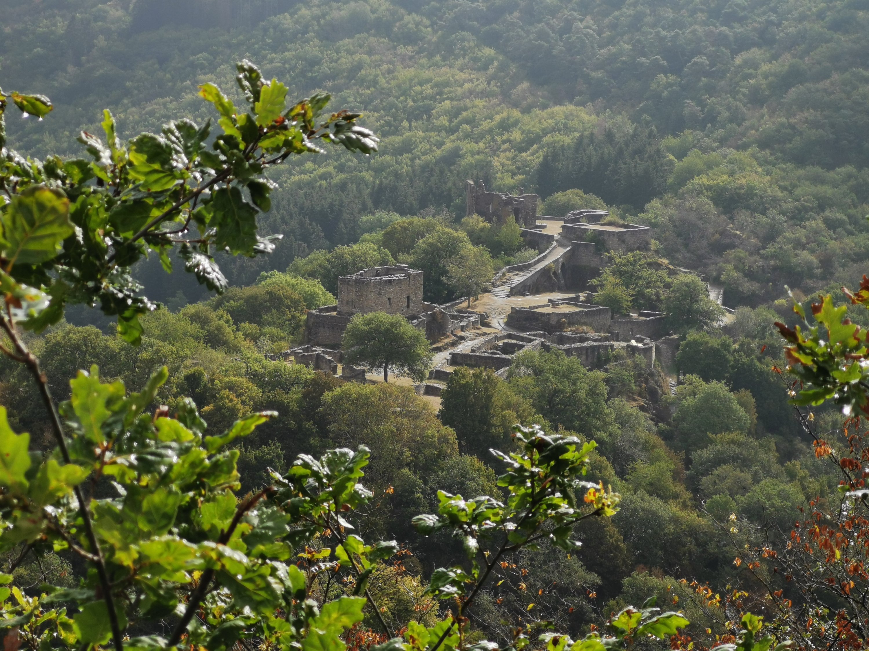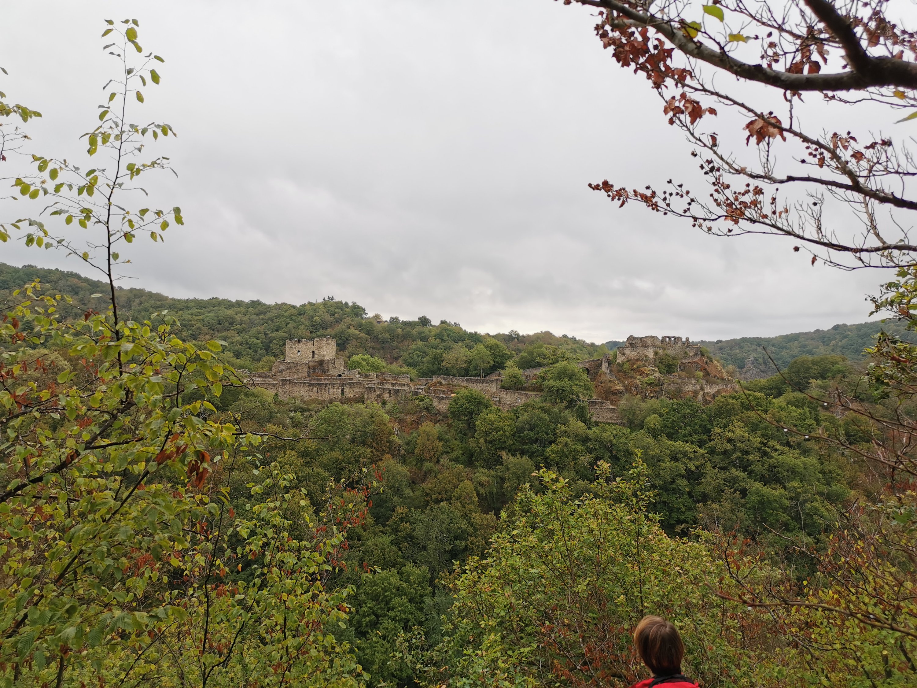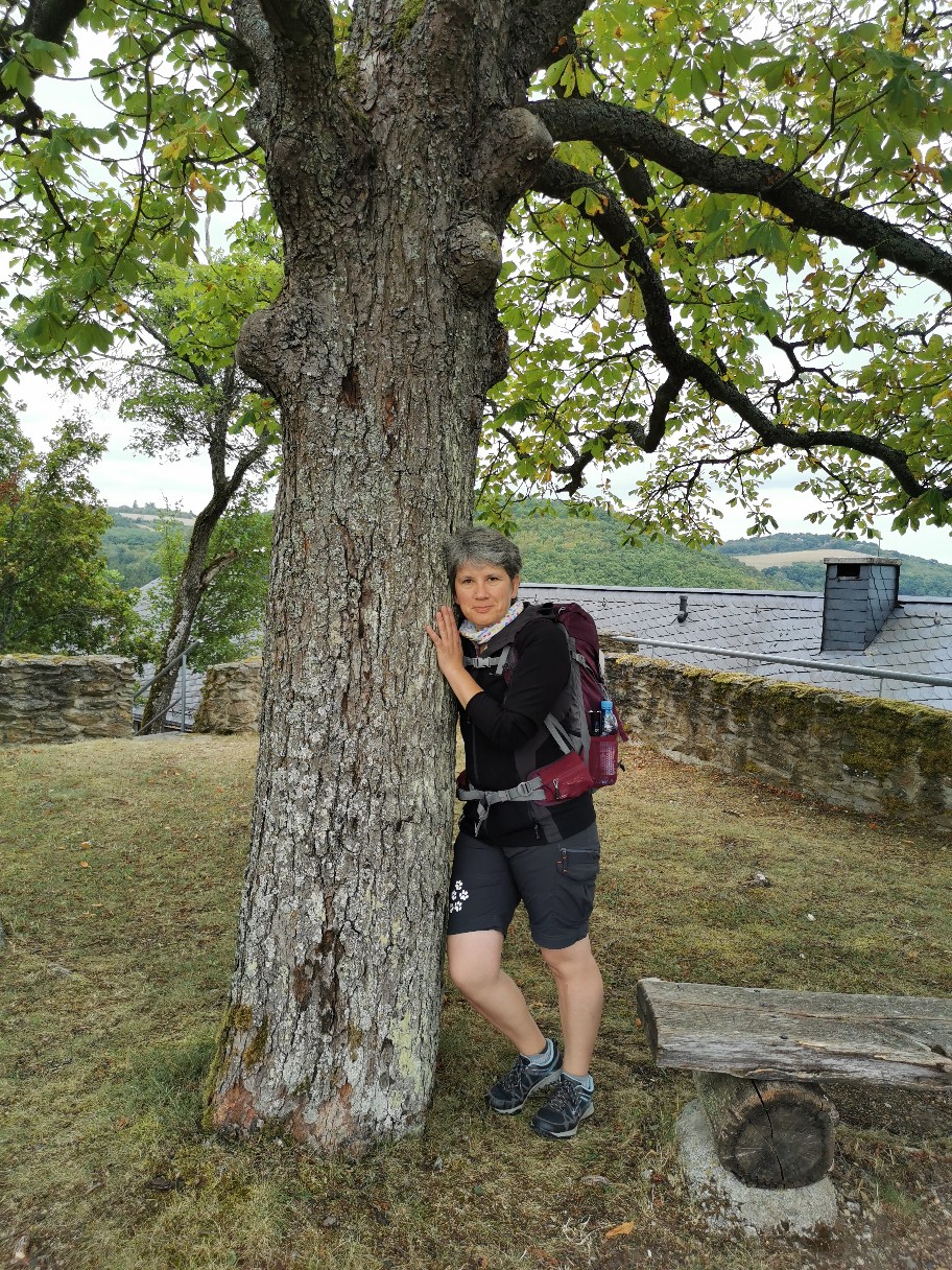 Glück gehabt und nichts wie weiter nach Schneppenbach. Dort am Wanderparkplatz ergänzten wir die Rucksäcke mit der Camping Ausrüstung und sind zu Fuß weiter zur Schmidtburg.