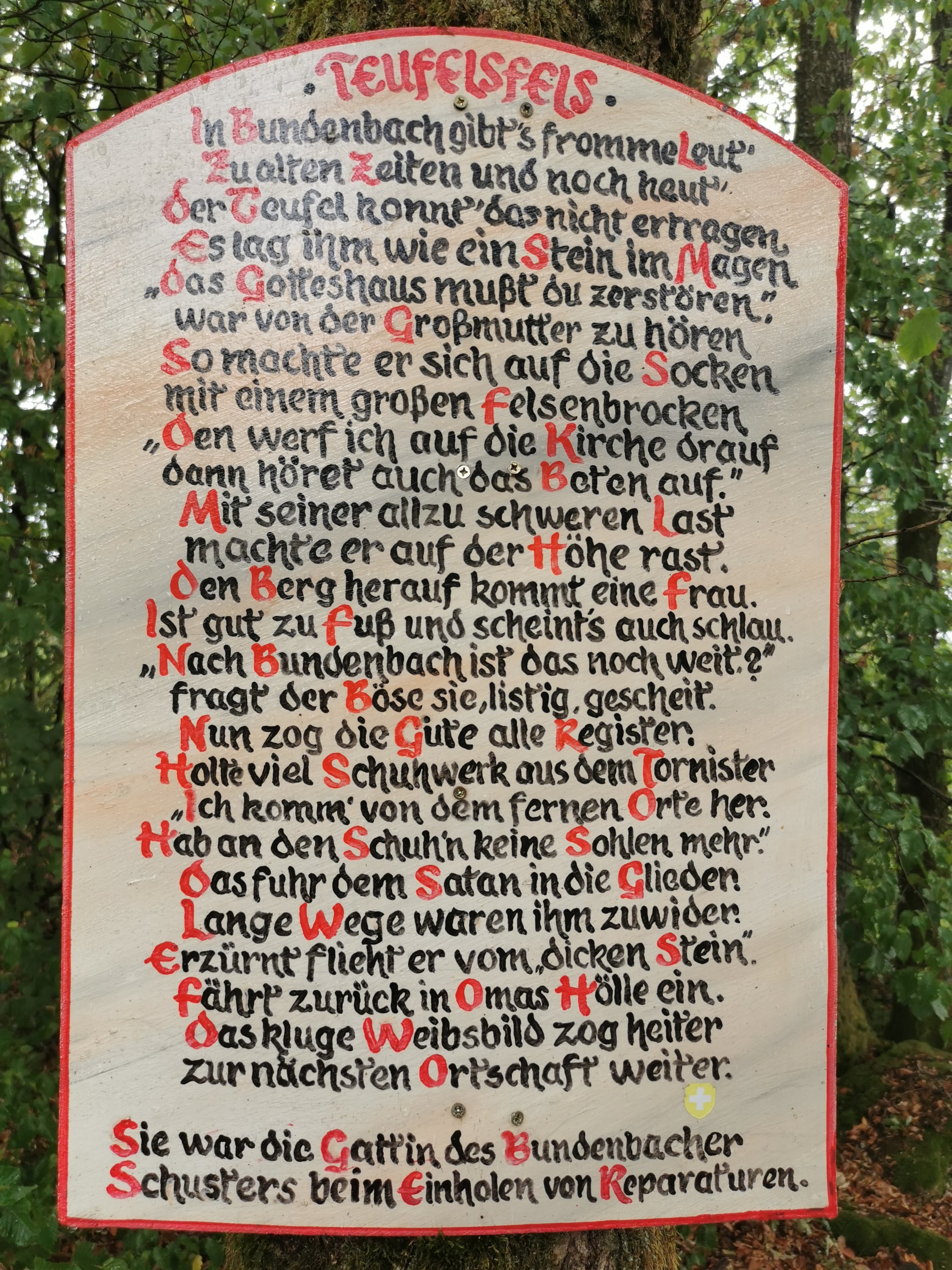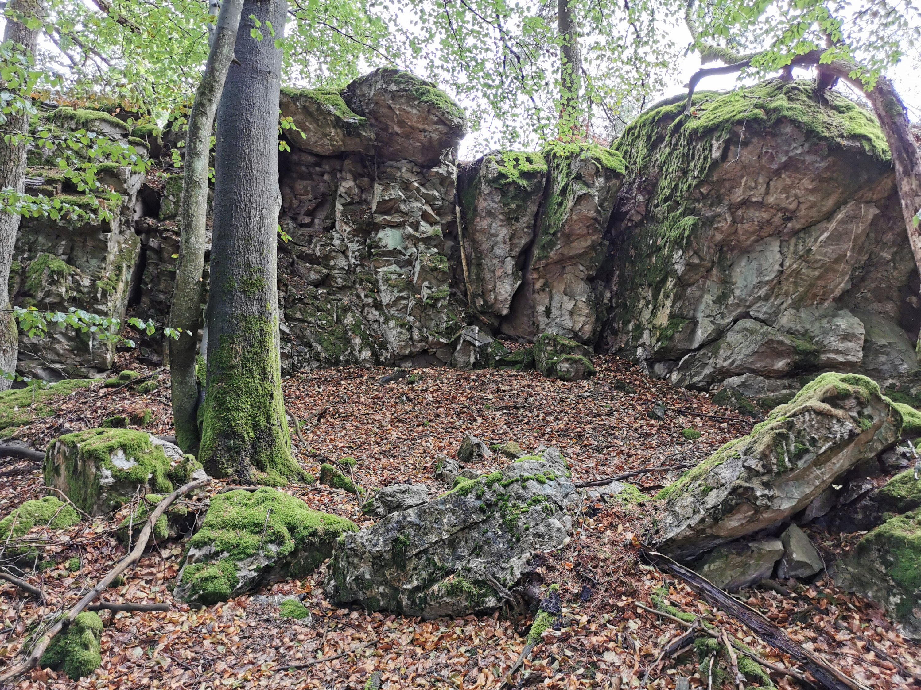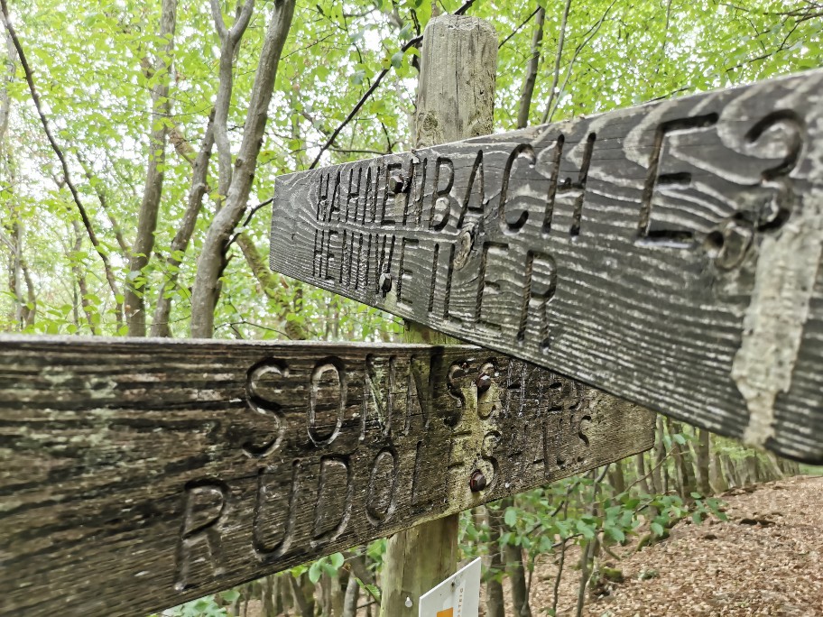 Nach der ausführlichen Erkundung der Burg ging es weiter. Wir spürten bereits die ersten Tropfen beim verlassen des Waldes und auf dem freien Feld entwickelten sich die paar Tropfen zu einem ausgewachsenen Schauer. Auf den Wegweisern ist die Teufelshütte bereits einige Zeit ausgeschildert und wir beschlossen dort eine Pause zu machen. Der Regen wurde immer stärker und unsere Stimmung ein wenig grummeliger. Die konfusen Kilometer bzw Meter angaben bis zur Hütte waren dabei nicht hilfreich. Der steile Anstieg tat sein übrigens. Ich hatte schon nicht mehr geglaubt das die Teufelshütte wirklich existierte als sie an der Weggabelung endlich im Regen auftauchte, unsere Rettung!