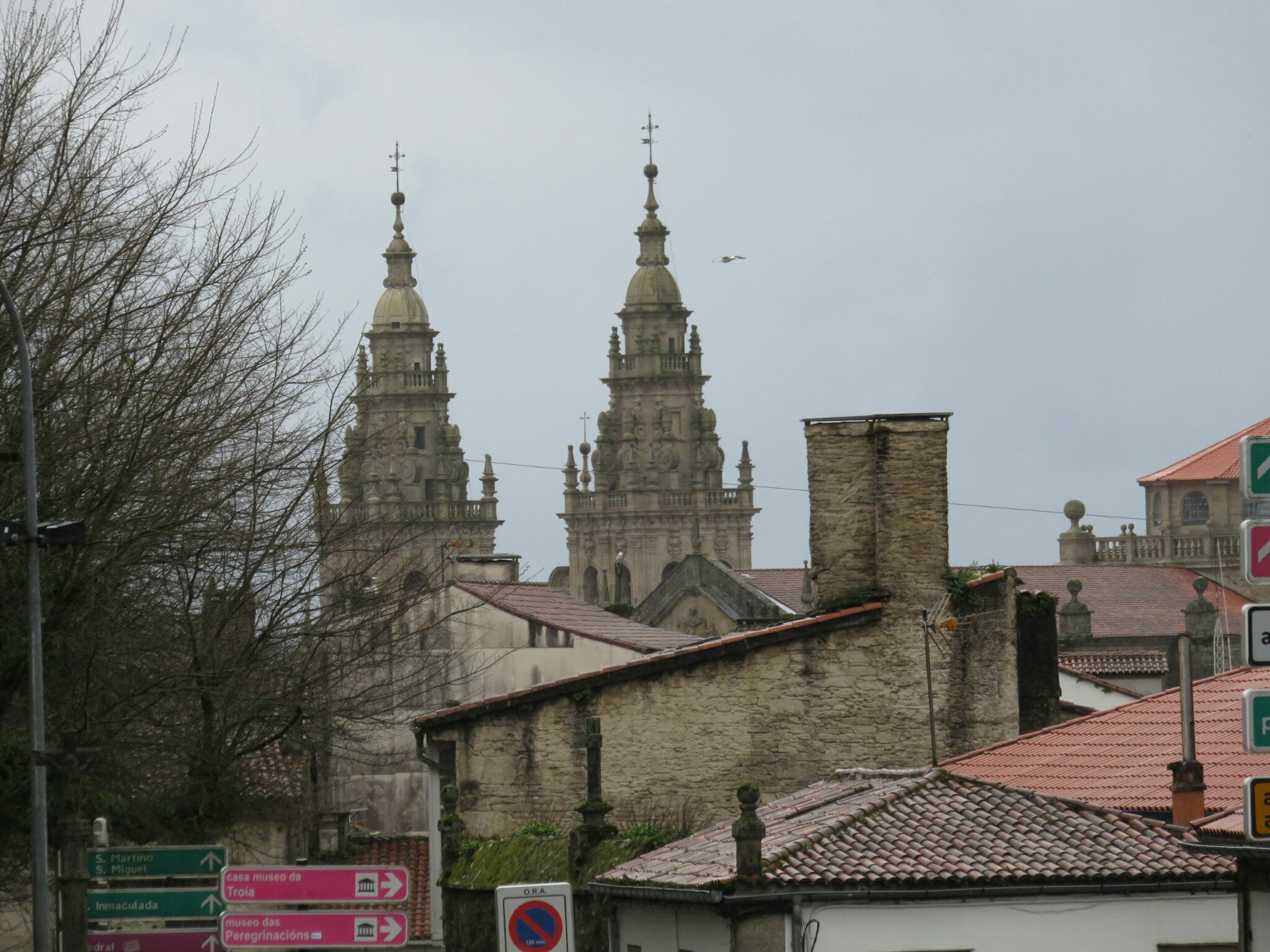 Auf den letzten drei Kilometer in Santiago selbst schafften wir es tatsächlich uns noch zweimal zu verlaufen, Unglaublich! Das Mädel in Ferrol in der Touristen Information hatte mich ja gewarnt das es auf dem letzten Stück etwas dürftig ist mit der Beschilderung aber da es dahin so gut war hatte ich mir keine Gedanken mehr darüber gemacht. Nicht hilfreich war es das genau in dem Moment ein ordentlicher Schauer wieder durchzog. In der Altstadt angekommen, ca noch 100 bis 150 bis zur Kathedrale war der Hunger doch so groß das wir erst in eine Bar sind um eine Kleinigkeit zu Essen und schon mal anzustoßen O:).