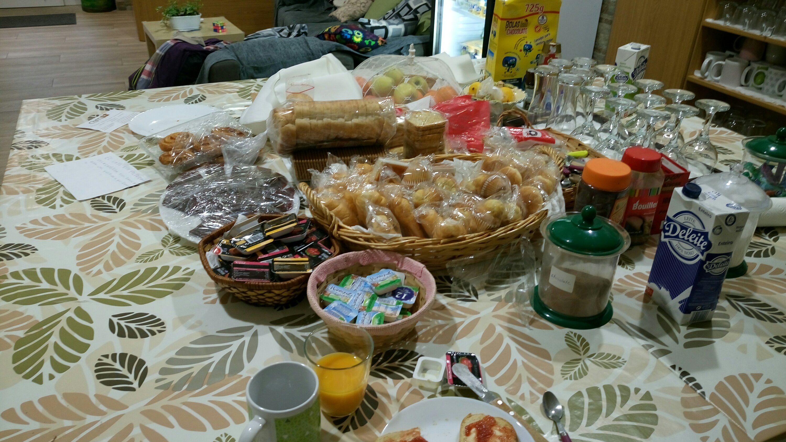Die Erste Bar die wir ansteuerten lag etwas abseits vom Weg aber da ein ordentlicher Regenschauer über uns zog machten wir diesen kurzen Abstecher. Die Idee hatten neben uns aber auch noch mindestens 30 andere. So sind wir in einer Flut von Leutenmit in das Café gespült worden. Ein Blick auf die ließ uns vermuten das wohl der Gottesdienst vorbei ist und nun alle zum zweiten Frühstück dort waren. Beim verlassen war die Sonne am scheinen und wir halbwegs wieder trocken.