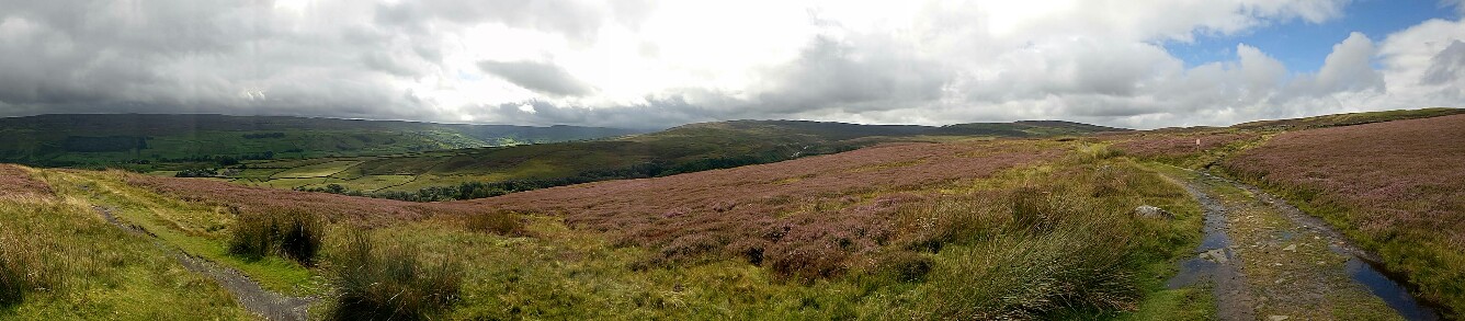 Ab jetzt ist es theoretisch nur noch dem gut sichtbarem Weg folgen und die Aussicht genießen. Von oben schaut das Vale of Mowbray sogar richtig hübsch aus wie ein weicher Flickenteppich. Die Sicht ist heute so gut das wir schon die Küste am Horizont sehen können und die Schiffe die dort lang fahren. Wow, jetzt geht es wirklich auf das Ende zu! Die auf und Abstiege sind auf der heutigen Etappe ordentlich Steil. Da wir genug Zeit hatten machten wir einfach auf fast jedem Gipfel eine Pause, um die Sonne und die Aussicht zu genießen und die war auch einfach superschön!
