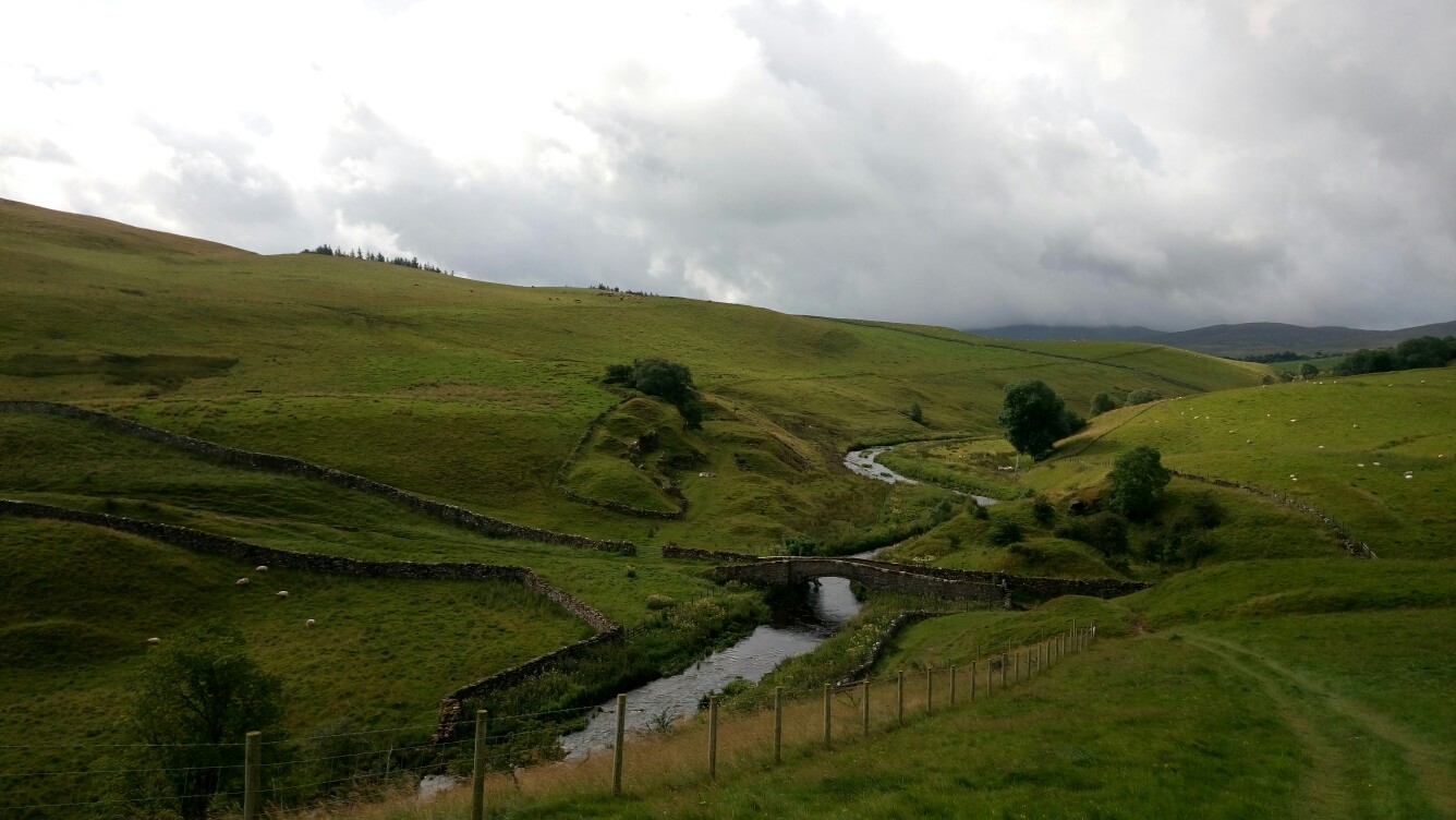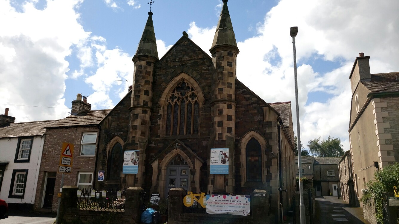 Frisch war es die Nacht zum Glück ab es jedemenge Wärmflaschen in dem Campingbarn. Dafür war heute morgen die Sonne pünktlich zum Start wieder draußen. Die Sonne hat das laufen viel angenehmer und einfacher gemacht. Der Weg war gefühlt weniger nass und so waren Franzi und ich schneller als erwartet unterwegs. Oben auf Smardale Fell hatten wir eine sehr schöne Aussicht und beschlossen denn Sonnenschein auszunutzen und setzen uns eine Weile hin. Die Aufstiege des Tages hatten wir hinter uns und jetzt ging es nur noch auf Kirkby Stephen zu. Schneller als gedacht kamen wir auf eine Farm zu wo uns ein Wegweiser, die grüne Tonne vom letzten mal, das es nur noch eine halbe Meile ist. Ui sind wir heute früh dran! Macht nichts so ein halber ruhe Tag tut auch ganz gut. Schnell standen wir vor der angepeilten Jugendherberge. Von außen hatte die uns letztes mal schon fasziniert, ist es doch eine alte umgebaute Kirche. Natürlich waren wir zu früh da für den Check In aber ein Anruf bei der angegebenen Telefonnummer brachte uns immerhin schon mal die Zusage das genug Platz vorhanden ist. Quasi nebenan, ist direkt die nächste umgenutzte alte Kirche in der ein Café mit kleinem Shop untergebracht ist. Das war lecker dort und wir konnten gut den nächsten Regenschauer aussitzen 🙂